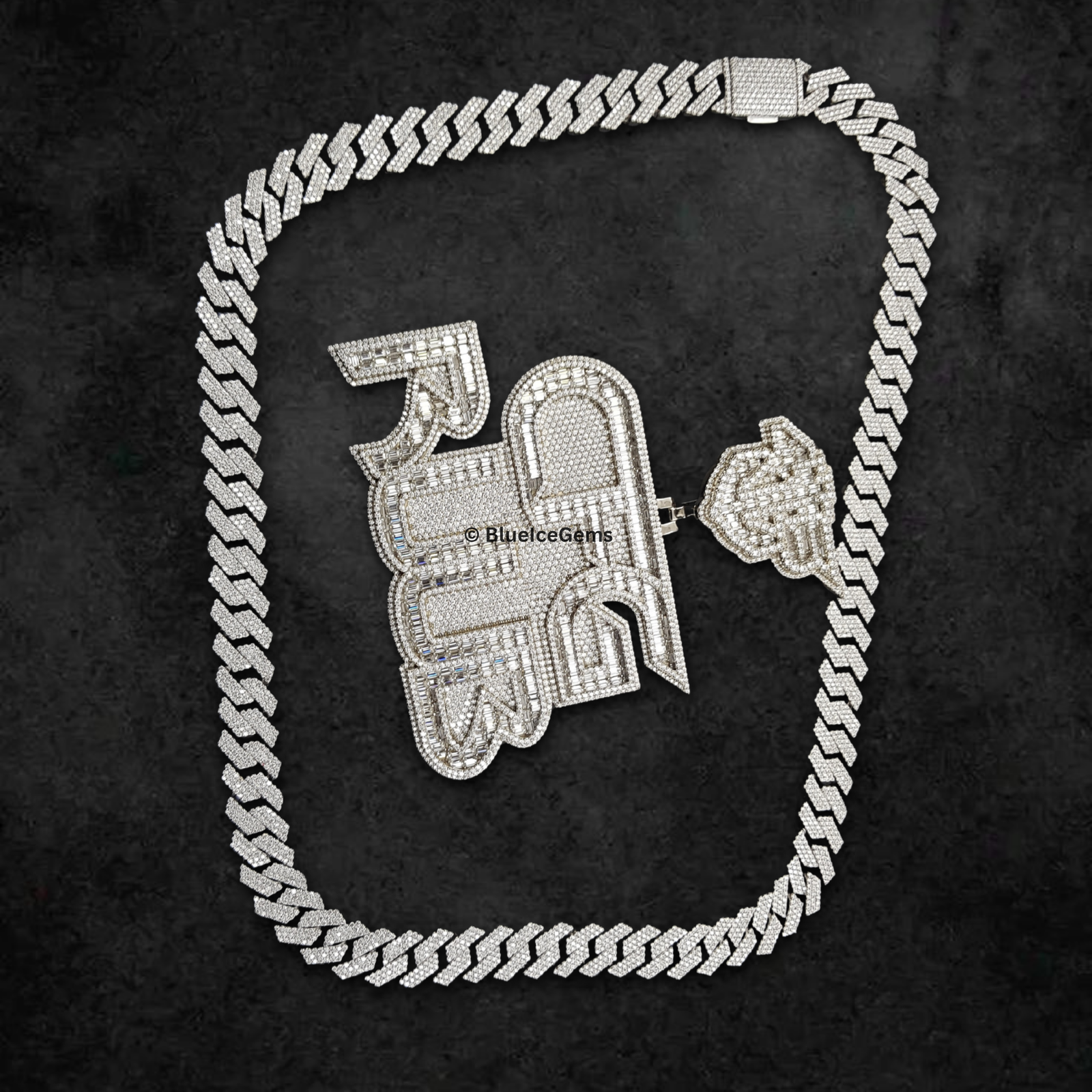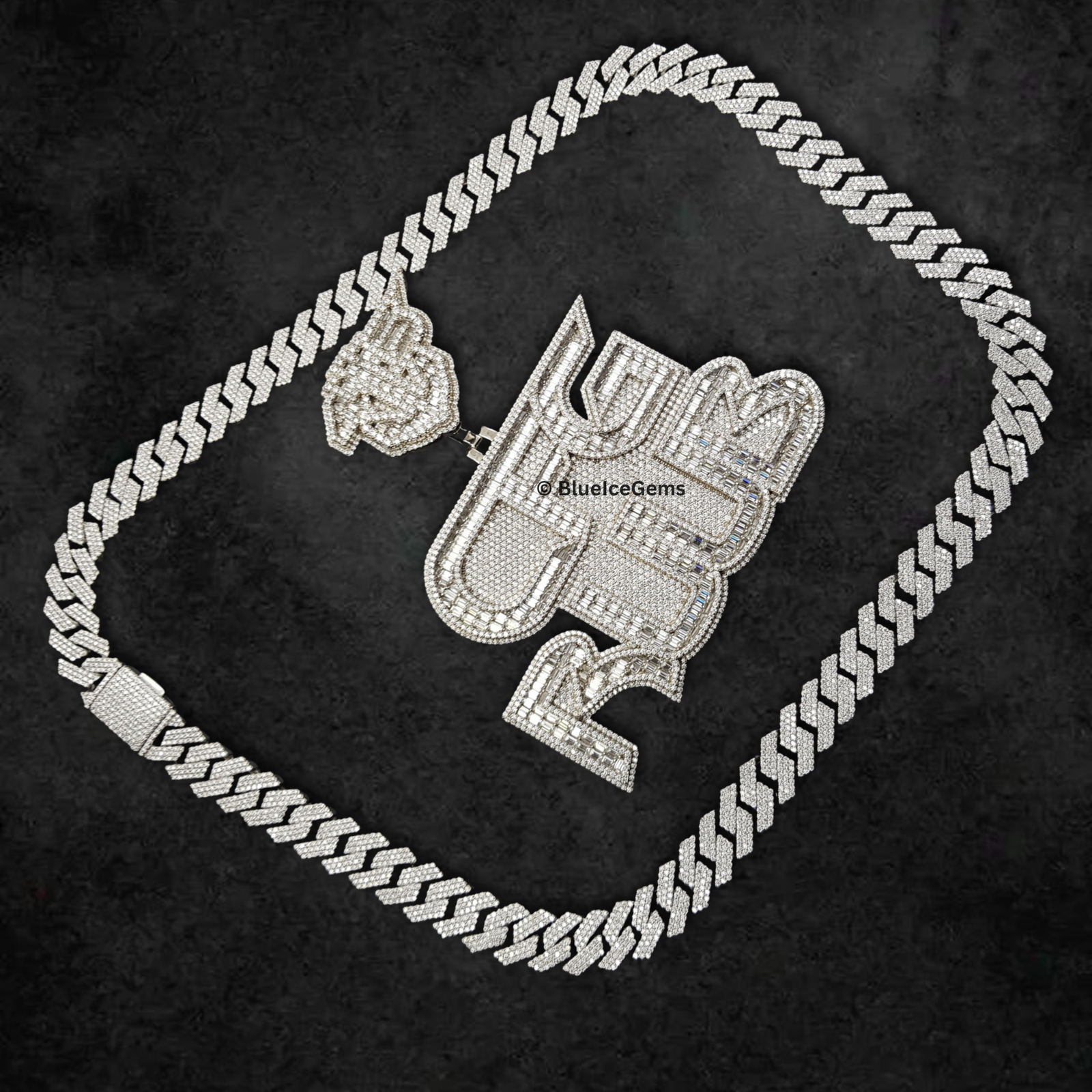 Command the ultimate in luxury and street-style sophistication with The “CFG RUUB” King Chain & Diamond Statement Pendant. This extraordinary piece begins with a substantial and meticulously crafted Cuban link chain, a timeless symbol of strength and opulence. Each individual link is lavishly pave-set with countless brilliant-cut diamonds, creating an unbroken cascade of pure light and unparalleled scintillation that dramatically illuminates your presence. This isn’t just a chain; it’s the foundation for a truly monumental statement, designed to exude uncompromised luxury and audacious personal style.