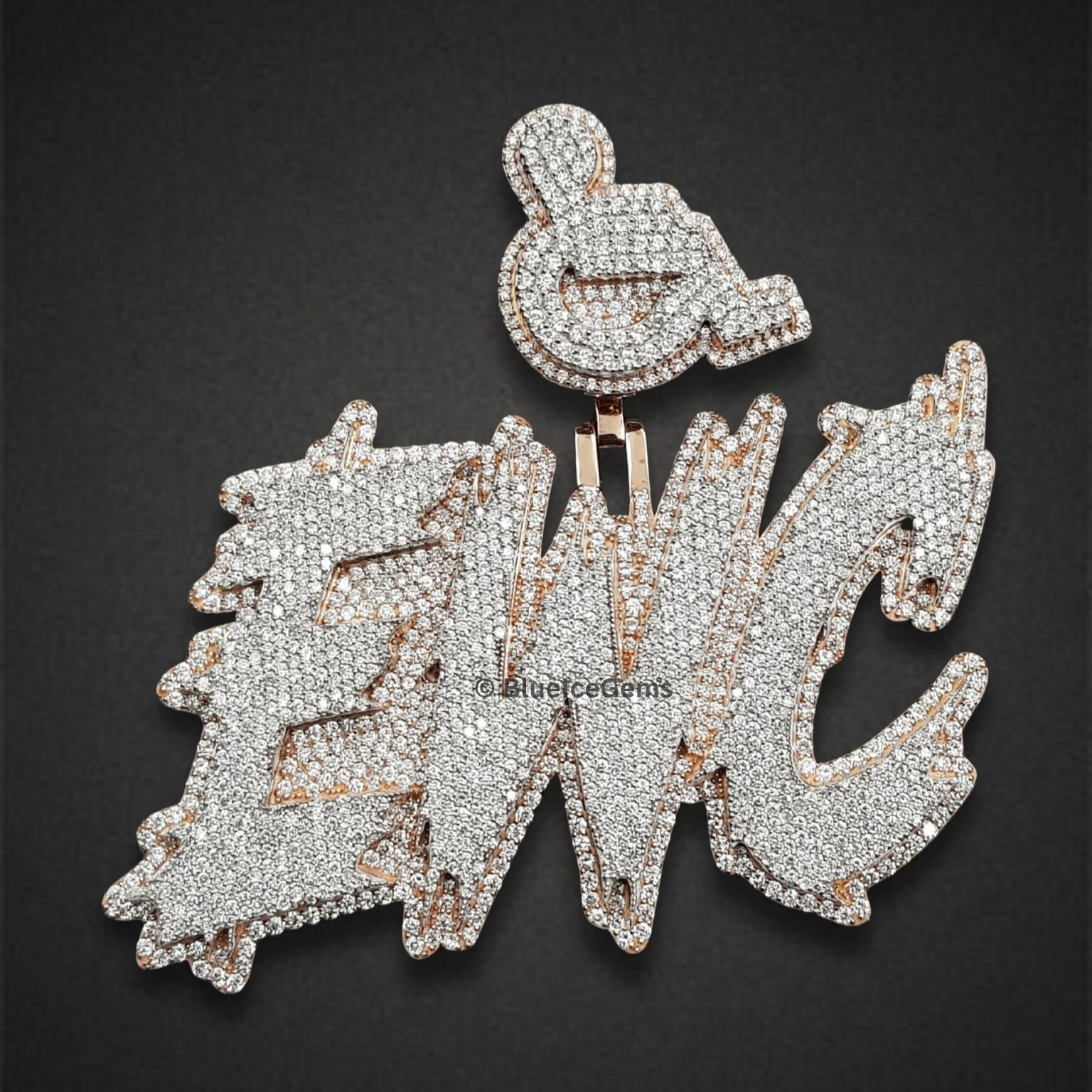 The EWC Pendant is an unapologetic burst of brilliance—crafted for those who dare to be different and shine on their own terms. Featuring electrified script-style lettering densely packed with shimmering micro-pavé stones, this piece doesn’t just reflect light—it amplifies it. Each curve of the design pulses with dynamic energy, making the pendant a magnet for attention and admiration. Encased in a sleek, polished rose gold base, it brings warmth and sophistication to the bold style, creating a perfect balance between luxe and edge. What truly sets it apart is its fully iced duck-shaped bail—an unexpected, playful accent that adds depth and personality. Whether you wear it to rep your initials, your crew, or a statement mindset, the EWC Pendant makes sure your identity doesn’t just shine—it commands space. It’s loud, unmistakable, and loaded with symbolism, making every glance a story and every sparkle a stance.