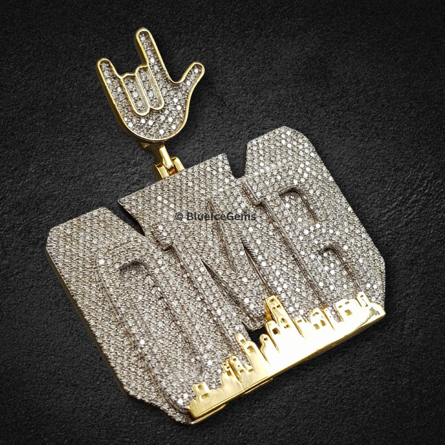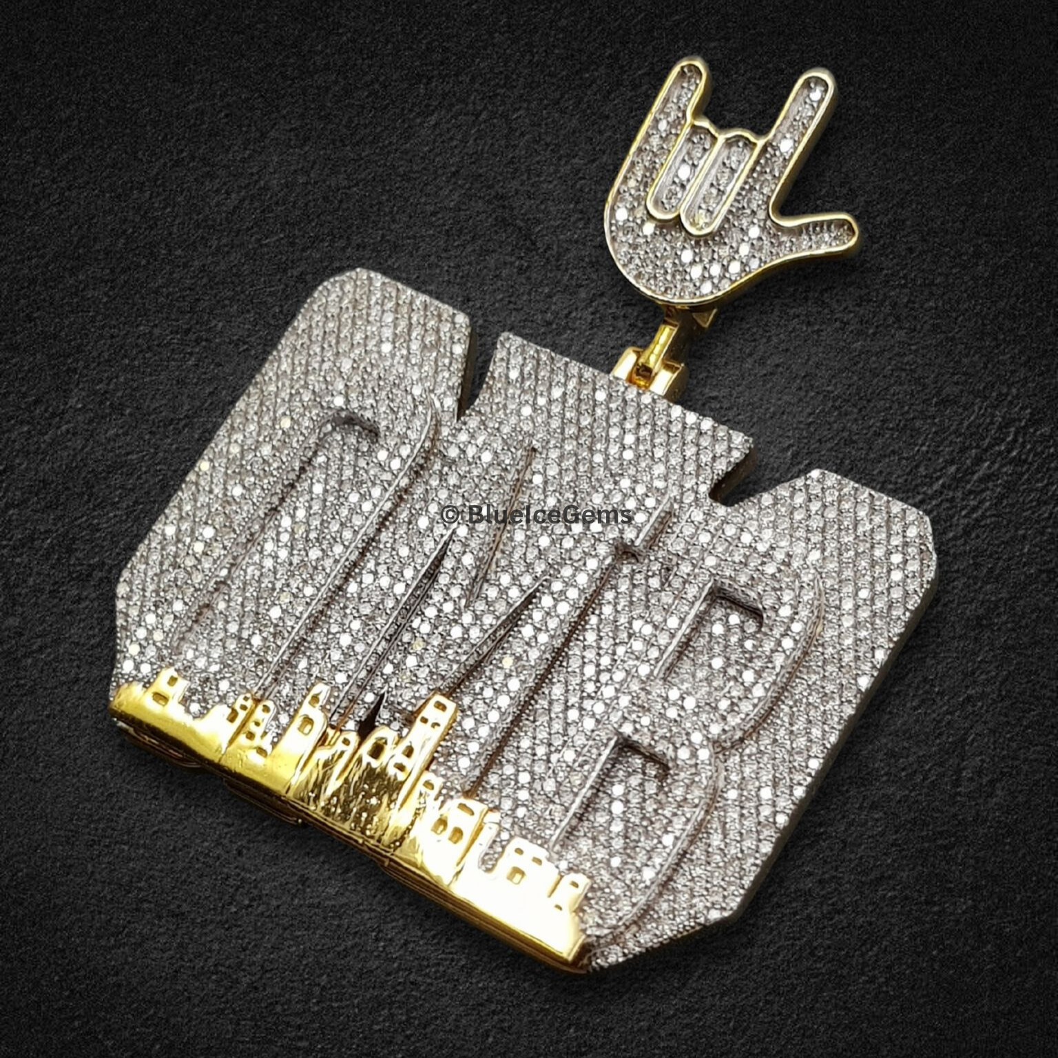 The custom OMB Pendant is a radiant salute to heritage, pride, and unmistakable style—crafted for those who carry their roots with brilliance. The bold block-letter “OMB” design is drenched in high-clarity stones, giving off a luxe, iced-out glow that demands attention. Anchoring the pendant is a shimmering gold city skyline, a symbol of hometown love and legacy—turning every glance into a shout-out to where it all began. At the top, the ILY (I Love You) hand sign bail adds heartfelt impact, blending cultural strength with personal expression. Whether you’re repping a crew, your birth city, or the values that shape you, this pendant hits with power and purpose. It’s a wearable tribute to loyalty and belonging, made to stand out and stay meaningful.