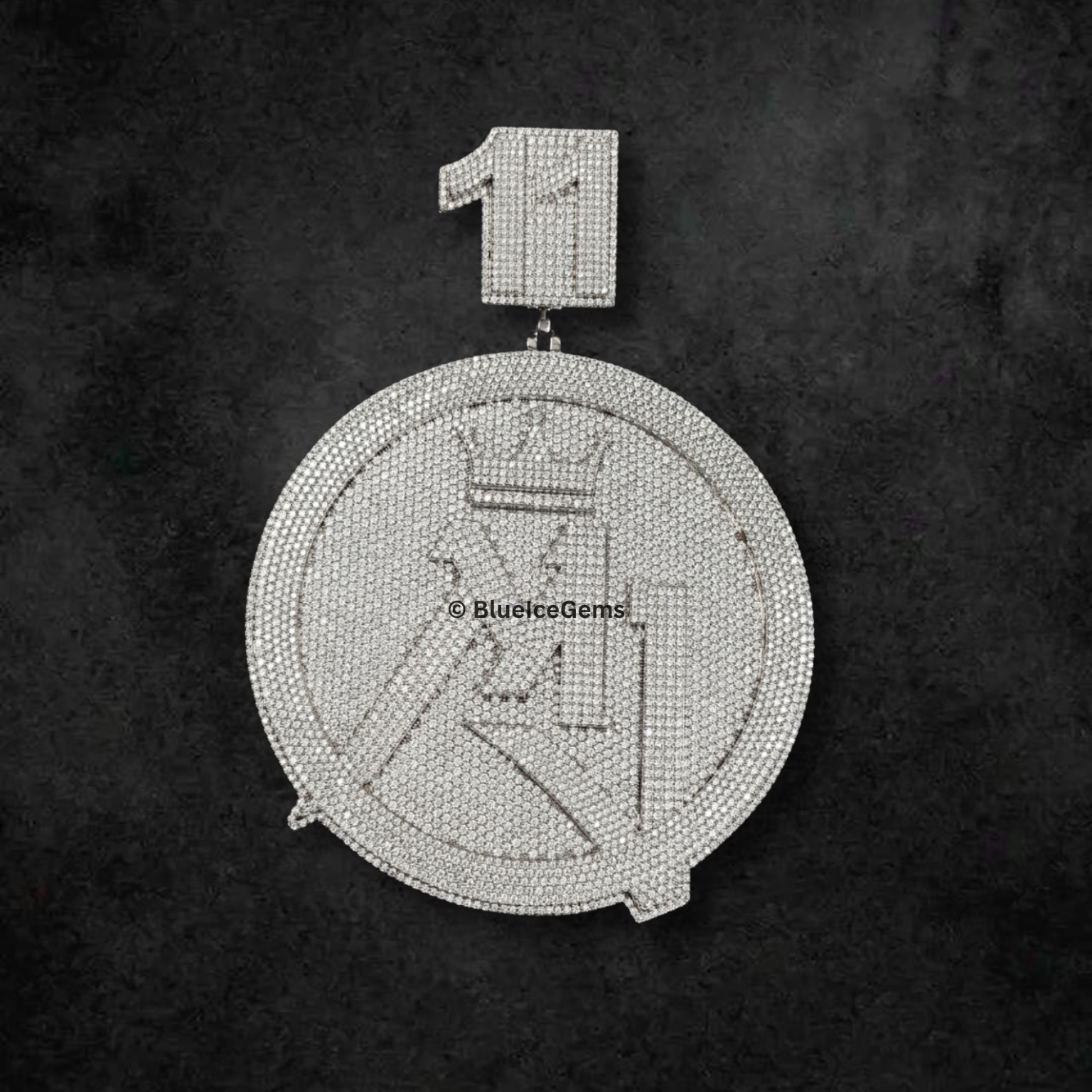 This monumental circular medallion from BlueIceGems is an absolute cascade of light, meticulously designed to radiate brilliance and profound meaning. It is entirely and artfully blanketed in brilliant pave diamonds, each gem precisely set to create an unbroken, shimmering surface of pure fire and unparalleled scintillation that captures every eye. At the very heart of this dazzling piece, the bold number “11” is prominently featured, further enhanced by a magnificent diamond diadem that triumphantly crowns it. Adding another layer of depth and significance, a separate, brilliant diamond-paved “11” sits gracefully atop the medallion, creating a powerful and fortunate statement of personal luxury, unique identity, and audacious style. This isn’t just a piece of fine jewelry; it’s a profound emblem designed to symbolize luck, new beginnings, or a significant personal connection, radiating uncompromised brilliance from every angle.