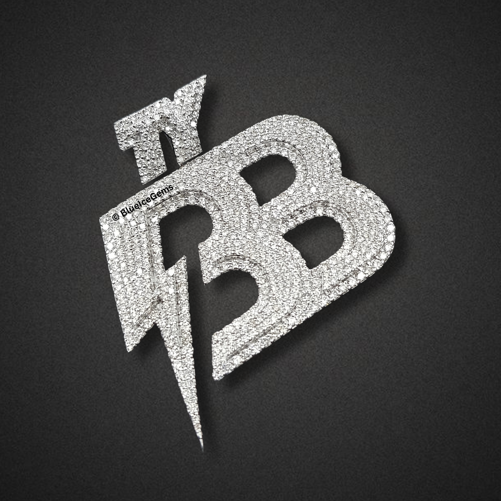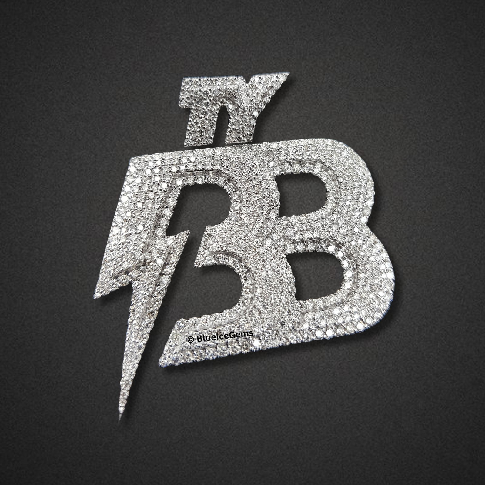 Command attention and electrify your style with The “Bolt B” Diamond Statement Pendant, a truly formidable and visually captivating piece meticulously crafted to dazzle from every angle. This impressive custom pendant features a bold capital “B” initial, its entire surface lavishly blanketed in an astonishing array of brilliant pave-set diamonds, creating an uninterrupted field of pure fire and scintillation that captures and reflects light with unparalleled brilliance. A dynamic lightning bolt is seamlessly integrated into the “B” and extends outwards, symbolizing power, speed, or a striking persona. Topping this powerful emblem is a smaller, equally brilliant “TY” initial. Crafted entirely in gleaming white gold, the seamless setting allows the diamonds to truly take center stage, creating an illusion of pure, floating ice. This pendant is more than just jewelry; it’s a powerful emblem of identity, aspiration, and uncompromised luxury, meticulously designed for those who demand attention and appreciate the pinnacle of custom diamond artistry.