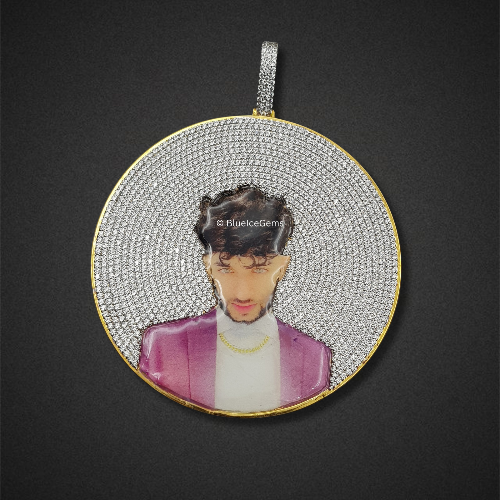 Celebrate memory, legacy, and radiant craftsmanship with the “Diamond Portrait” Bespoke Medallion—a personalized masterpiece designed to honor what matters most, in breathtaking style. This exquisite round pendant places your chosen portrait at the heart of its brilliance, rendered through vibrant enamel artistry or a high-resolution print process that ensures every nuance shines with emotional depth and stunning clarity. Encircling the image is an expansive field of meticulously pave-set brilliant-cut white diamonds, hand-placed to create a seamless halo of light. Their dazzling arrangement transforms the entire face of the medallion into a constellation of sparkle, framing the portrait with reverence and radiance. The circular composition evokes timelessness, making it the perfect canvas for tribute, celebration, or remembrance. Whether worn close to the heart or gifted as a forever keepsake, the “Diamond Portrait” Medallion is more than jewelry—it’s a luminous tribute to love, legacy, and individuality. Ideal for anniversaries, milestone moments, or creating a visual heirloom that’s as meaningful as it is magnificent.