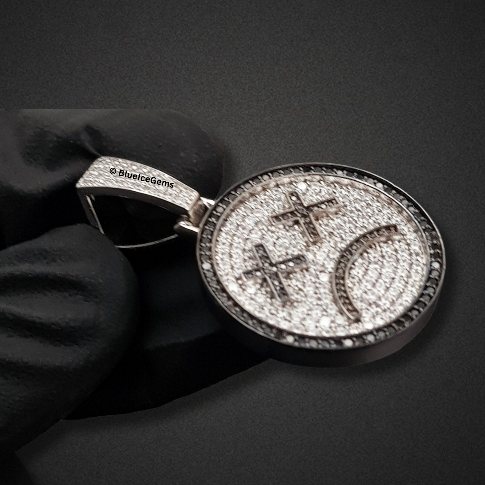 Make a bold and expressive statement with The “Iced Out Frowny Face” Diamond Medallion, a captivating piece that beautifully blends contemporary symbolism with dazzling brilliance. This substantial circular pendant is an absolute cascade of light, meticulously pave-set with an astonishing array of brilliant white diamonds across its entire surface, creating an uninterrupted field of shimmering sparkle. The iconic frowny face emoji, complete with “X” eyes and a downturned mouth, is boldly rendered in striking black pave diamonds, providing a dramatic contrast against the white diamond backdrop. A sleek black diamond border encircles the medallion, enhancing its edgy aesthetic, while the entire piece is set in gleaming white gold. The integrated, diamond-studded bail ensures a secure and prominent display on your chosen chain, allowing this powerful emblem of expression and uncompromised luxury to truly stand out.