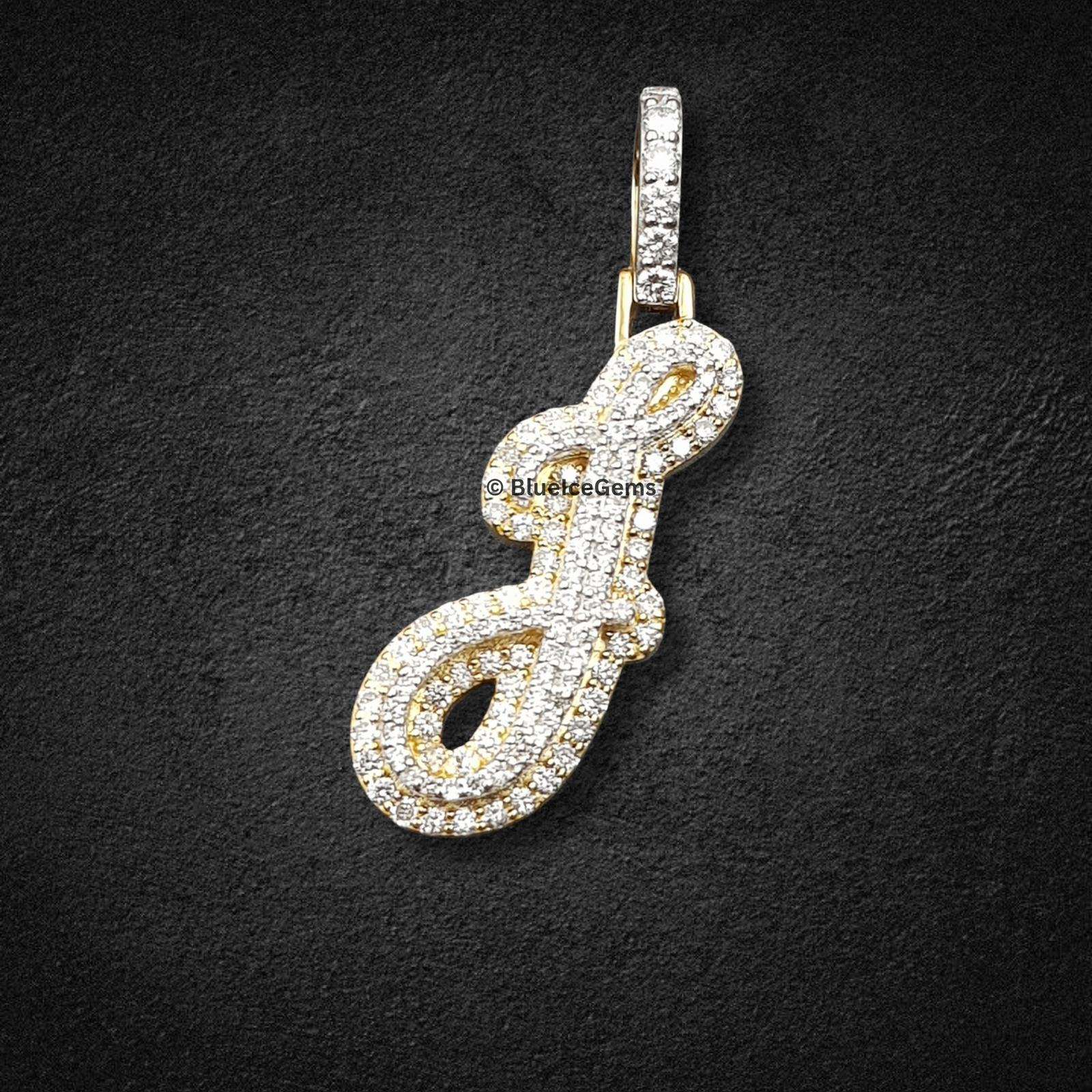 Celebrate your unique personal style and make an unforgettable statement with this dazzling “J” initial pendant, an exquisite creation from BlueIceGems. Elegantly crafted in a sophisticated flowing script, this pendant embodies grace and individuality. It is meticulously pave-set with brilliant white diamonds, ensuring every curve and line shimmers with an unbroken surface of pure fire and unparalleled scintillation that radiates from every angle. The entire design is subtly outlined in warm, luxurious yellow gold, providing a gentle yet rich contrast that beautifully enhances the diamonds’ icy brilliance and adds to its opulent appeal. This isn’t just a piece of fine jewelry; its radiant brilliance makes a timeless and truly personalized statement of luxury, designed to be cherished as an emblem of your distinctive identity and elegant taste.
