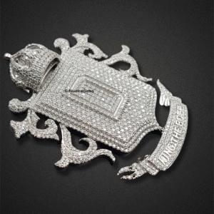 Declare your reign with The “King The Boss” Royal Crest Diamond Medallion, a truly magnificent and unapologetically luxurious statement piece from BlueIceGems. This grand, shield-shaped pendant is entirely blanketed in an astonishing array of brilliant pave-set white diamonds, creating an unbroken field of dazzling light that shimmers with unparalleled fire and scintillation from every angle. At its heart, a bold and regal “D” initial is prominently displayed, also fully encrusted with shimmering diamonds, serving as your personal mark of royalty and command. This isn’t just a medallion; it’s a powerful emblem of authority and uncompromised luxury, designed for those who truly rule.