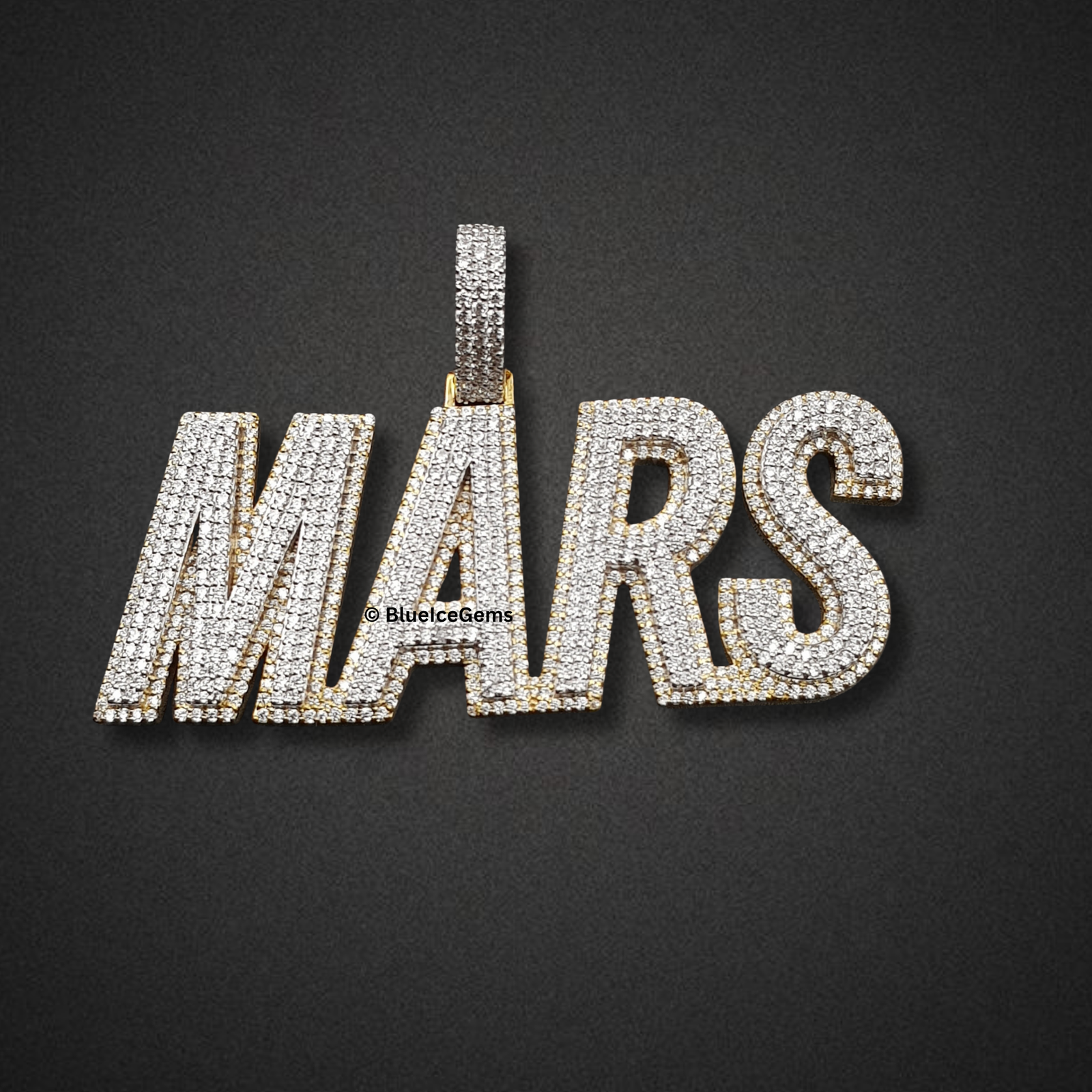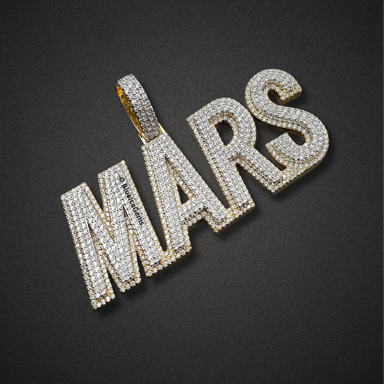 & Free ShippingA massive “MARS” pendant, fully iced out with sparkling white pave diamonds, framed in yellow gold, for a show-stopping and bold personalized statement piece.