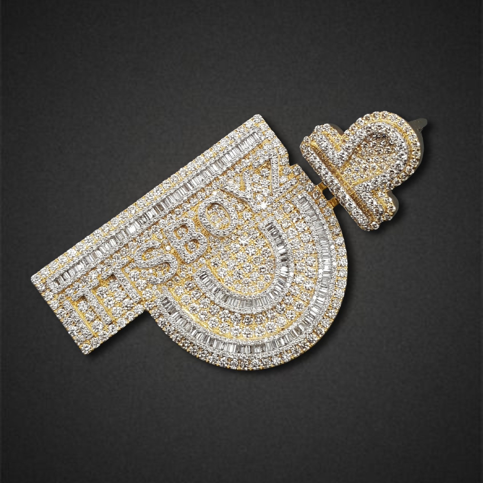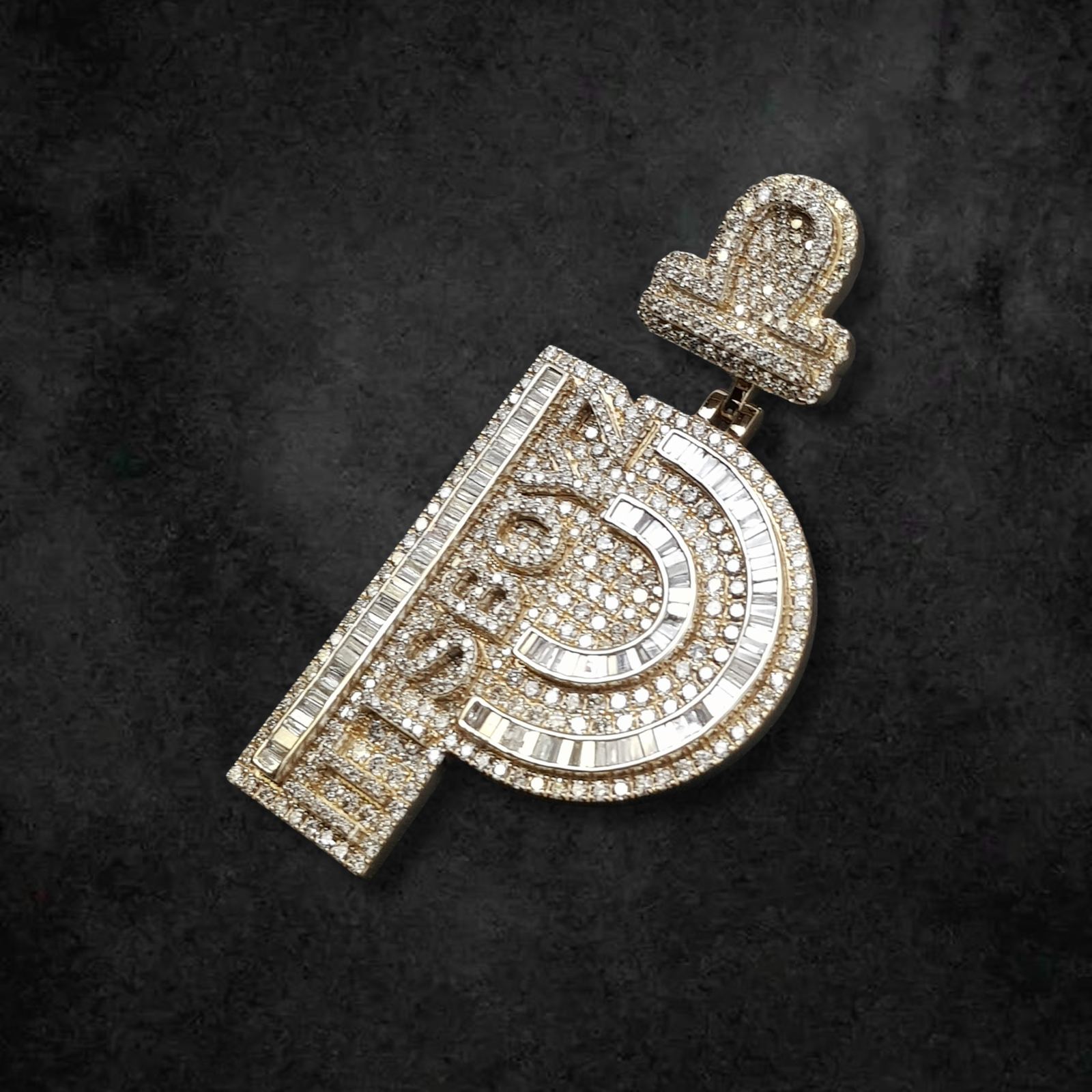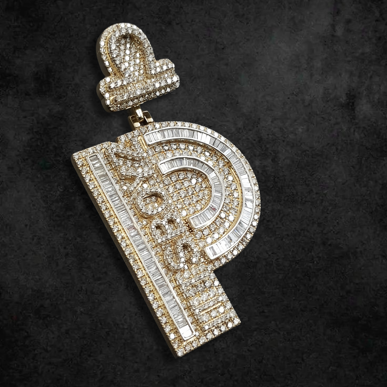Command attention and make a truly monumental statement with this extraordinary “P” initial pendant, an exclusive creation from BlueIceGems. This magnificent piece is lavishly adorned with a sophisticated combination of precisely cut baguette and pave diamonds, intricately weaving together icy brilliance with the warm allure of gold. The baguettes deliver striking linear sparkle, beautifully complemented by the continuous fire of the pave diamonds, ensuring unparalleled scintillation from every angle. A stylized Libra scale, also meticulously diamond-set, majestically crowns this powerful design, symbolizing balance, justice, and harmony within its opulent framework. This substantial piece is more than just fine jewelry; it’s a commanding and meaningful statement, exuding uncompromised luxury and a profound personal touch for the individual who values both dazzling aesthetics and deep symbolism.