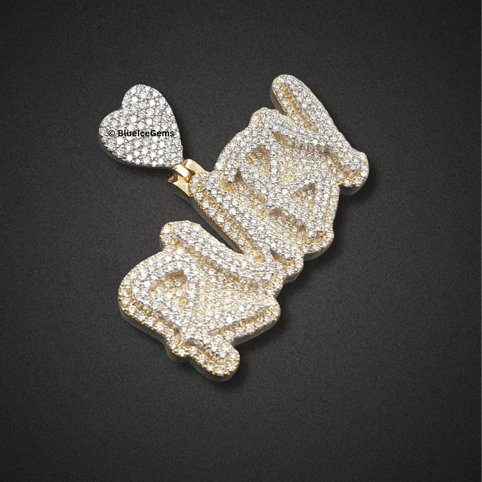 Celebrate a beloved name with The “Ruby” Heartfelt Diamond Pendant, a truly enchanting piece that blends personalized sentiment with radiant luxury. This impressive custom pendant elegantly spells out “Ruby” in a bold, dynamic script, embodying a vibrant and personal touch. Every contour of the name is meticulously pave-set with an astonishing array of brilliant-cut white diamonds, creating an unbroken surface of pure fire and unparalleled scintillation. The incredible density of diamonds ensures it catches and reflects light with breathtaking brilliance from every angle, radiating pure sparkle. This isn’t just a pendant; it’s a timeless and luxurious tribute, designed to be worn close to the heart as a shimmering symbol of cherished connections and exquisite style.