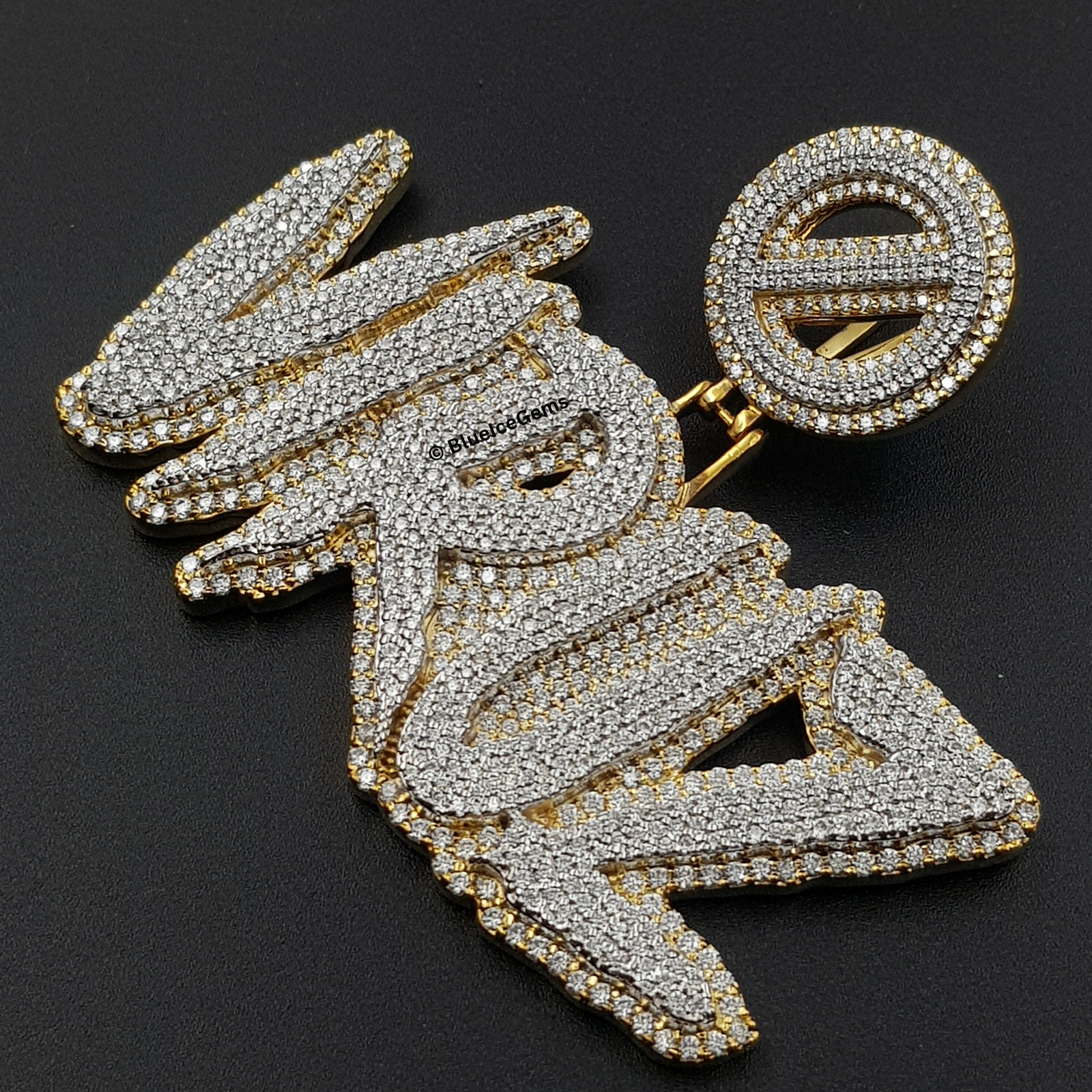 Make a fearless entrance with the “VIRUZ” No-Sign Diamond Pendant—a provocative fusion of rebellion and brilliance. This commanding piece is crafted for disruptors, creatives, and rule-breakers who thrive in their own lane. Featuring the bold inscription “VIRUZ” in graffiti-inspired script, the typography pulses with raw energy and unapologetic flair, echoing the spirit of urban expression. The pendant’s aggressive curvature and stylized lines are blanketed in an astonishing density of pave-set white diamonds, transforming street style into a canvas of luxury. Every stone is precision-placed to create a surface of uninterrupted brilliance, catching and refracting light like a viral supernova. This seamless diamond layer amplifies the pendant’s impact, making it irresistible from every angle. Whether paired with high-fashion layering or worn as a solo statement, the “VIRUZ” pendant channels edgy sophistication and untamed elegance. It’s not just jewelry—it’s a declaration of resilience, creativity, and the power to disrupt the ordinary.